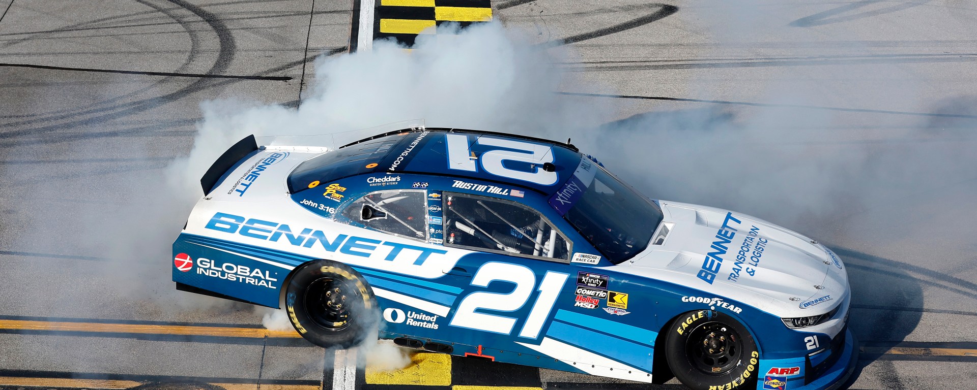 Unlike many of his previous superspeedway wins, Hill didn’t dominate the event. That role belonged to his Richard Childress Racing teammate Jesse Love, who started from the pole and led a race-high 50 of the 113 laps. Hill did make his presence known throughout the day, pacing the field for 19 laps and capturing the race’s second stage.