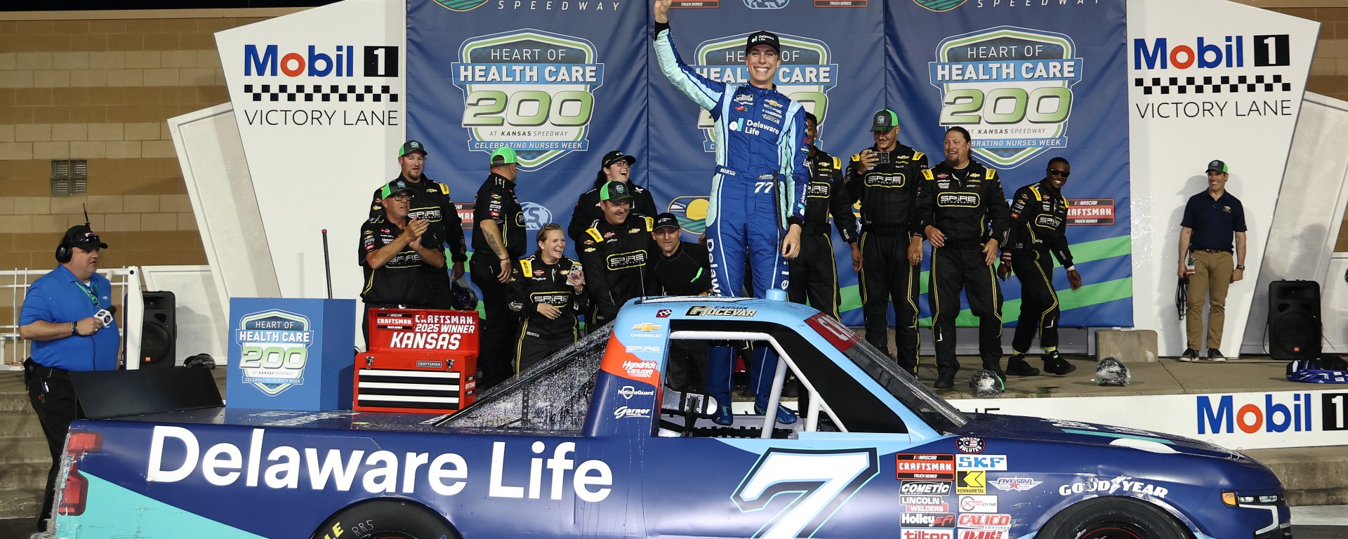 The victory marked Hocevar’s first win of the 2025 season in just his second NASCAR Craftsman Truck Series start this year. It was also his first triumph at the 1.5-mile Kansas track and the fifth checkered flag of his career.