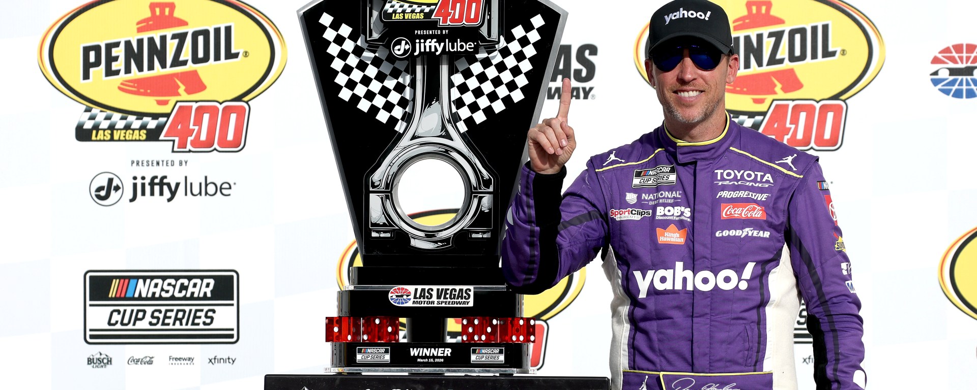 A determined and refocused Denny Hamlin delivered one of the most impressive performances of the young season on Sunday, capturing the Pennzoil 400 Presented by Jiffy Lube at Las Vegas Motor Speedway.
