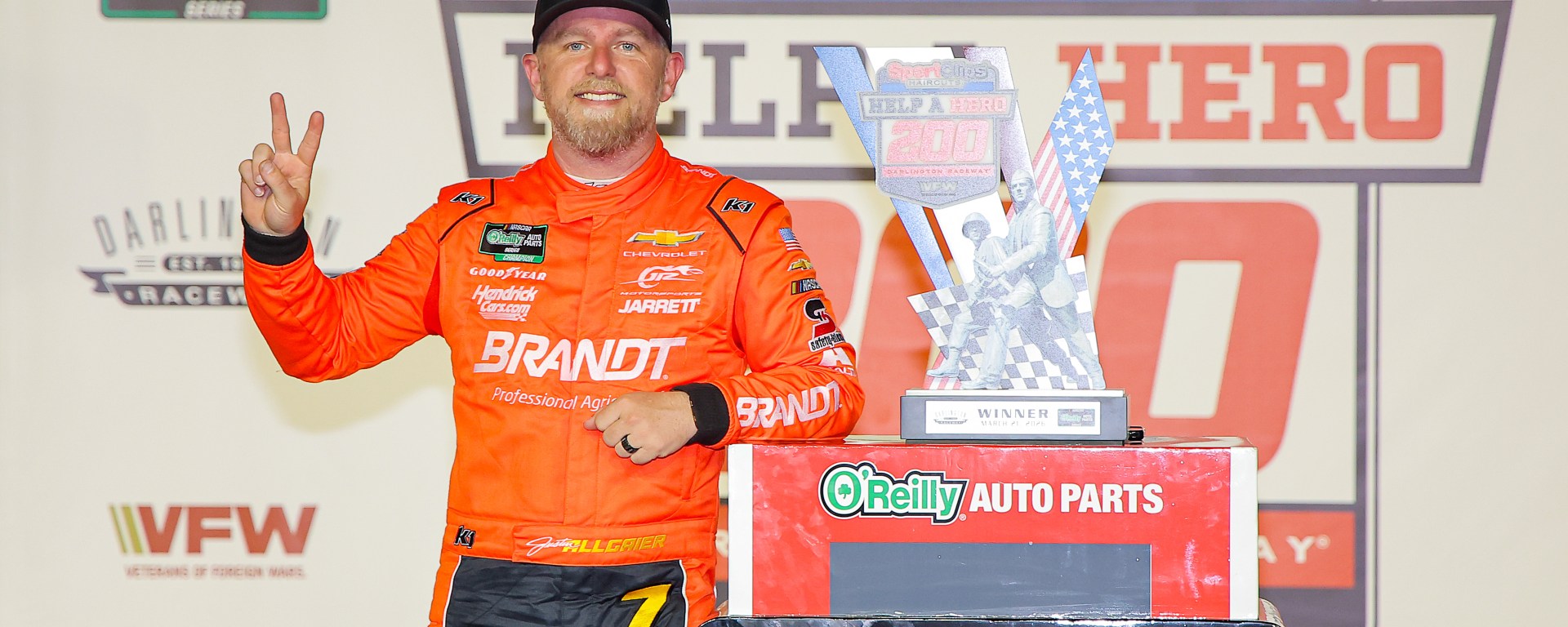 Justin Allgaier used strong pit stops and clutch restarts to capture the win in the Sport Clips Haircuts VFW Help a Hero 200 at Darlington Raceway. The victory marked his fourth at the track, his second of the 2026 season, and the 30th of his career in the NASCAR Xfinity Series, tying him with Joey Logano for seventh on the all-time wins list.
