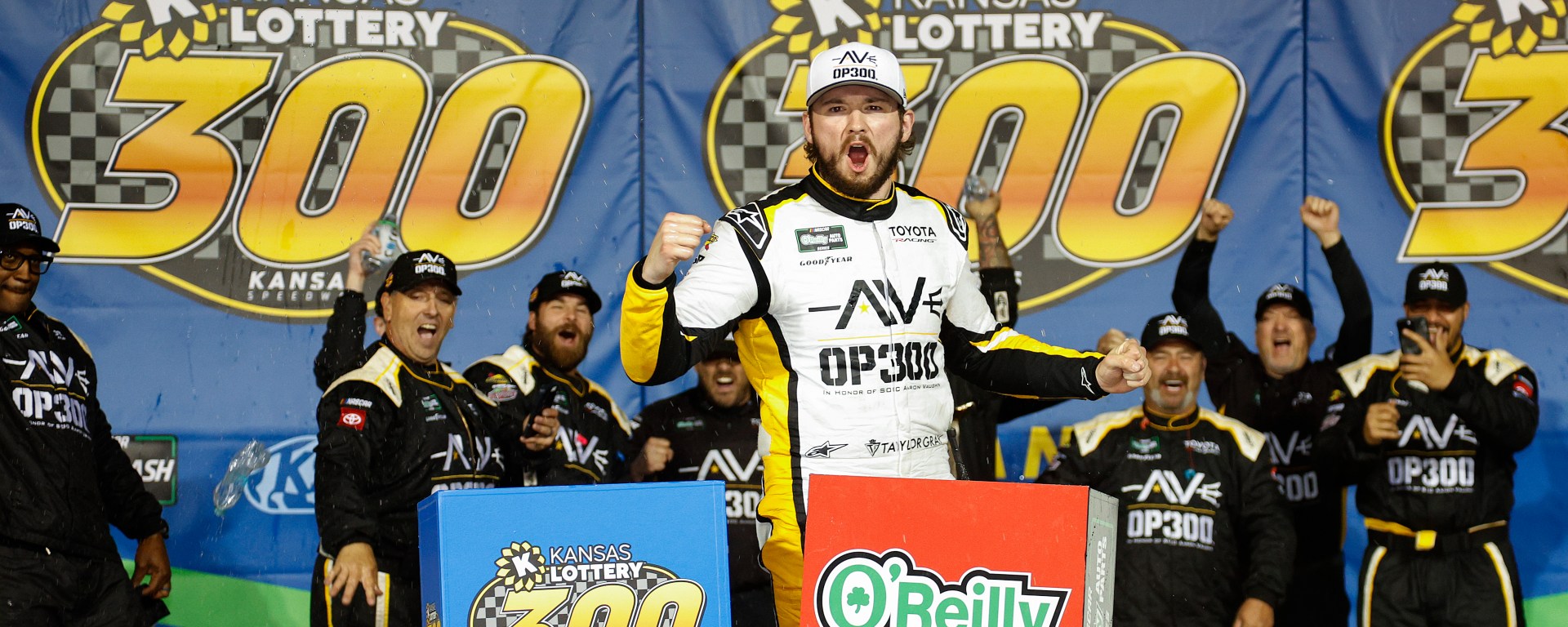 Taylor Gray used strategy and patience to earn a hard-fought win Saturday night at Kansas Speedway, capturing the Kansas Lottery 300 in the NASCAR Xfinity Series.